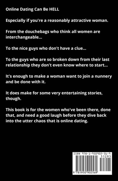 Online Dating Can Be HELL Especially if you're a reasonably attractive woman. From the douchebags who think all women are interchangeable… To the nice guys who don't have a clue… To the guys who are so broken down from their last relationship they don't even know where to start… It's enough to make a woman want to join a nunnery and be done with it. It does make for some very entertaining stories, though. This book is for the women who've been there, done that, and need a good laugh before they dive back into the utter chaos that is online dating.