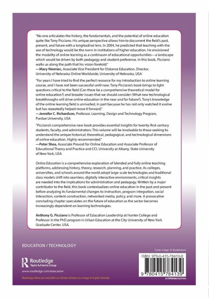 Online Education is a comprehensive exploration of blended and fully online teaching platforms, addressing history, theory, research, planning, and practice. As colleges, universities, and schools around the world adopt large-scale technologies and traditional class models shift into seamless, digitally interactive environments, critical insights are needed into the implications for administration and pedagogy. Written by a major contributor to the field, this book contextualizes online education in the past and present before analyzing its fundamental changes to instruction, program integration, social interaction, content construction, networked media, policy, and more. A provocative concluding chapter speculates on the future of education as the sector becomes increasingly dependent on learning technologies.