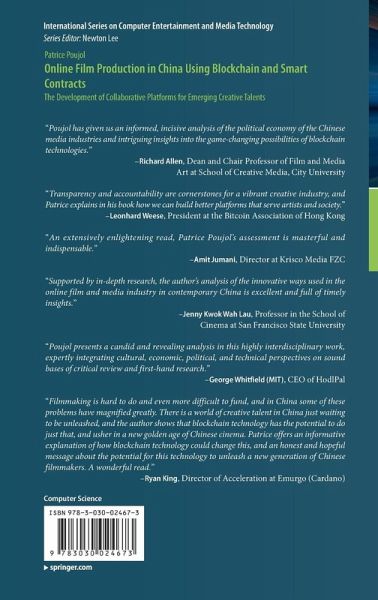 This book explores the use of Blockchain and smart contract technologies to develop new ways to finance independent films and digital media worldwide. Using case studies of Alibaba and in-depth, on-set observation of a Sino-US coproduction, as well as research collected from urban China, Hong Kong, Europe, and the USA, Online Film Production in China Using Blockchain and Smart Contracts explores new digital platforms and what this means for the international production of creative works.