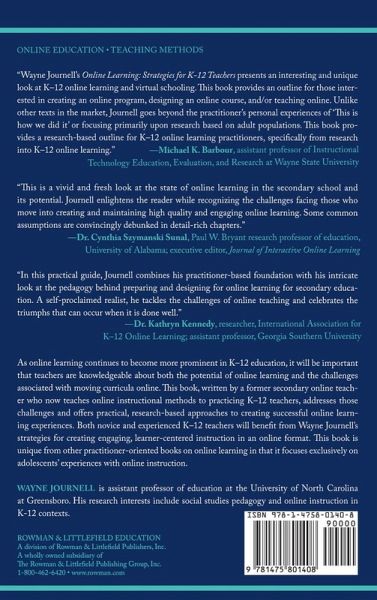 As online learning continues to become more prominent in K-12 education, it will be important that teachers are knowledgeable about both the potential of online learning and the challenges associated with moving curricula online. This book, written by a former secondary online teacher who now teaches online instructional methods to practicing K-12 teachers, addresses those challenges and offers practical, research-based approaches to creating successful online learning experiences.