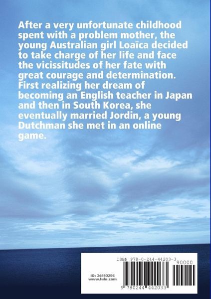 After a very unfortunate childhood spent with a problem mother, the young Australian girl Loaïca decided to take charge of her life and face the vicissitudes of her fate with great courage and determination. First realizing her dream of becoming an English teacher in Japan and then in South Korea, she eventually married Jordin, a young Dutchman she met in an online game.