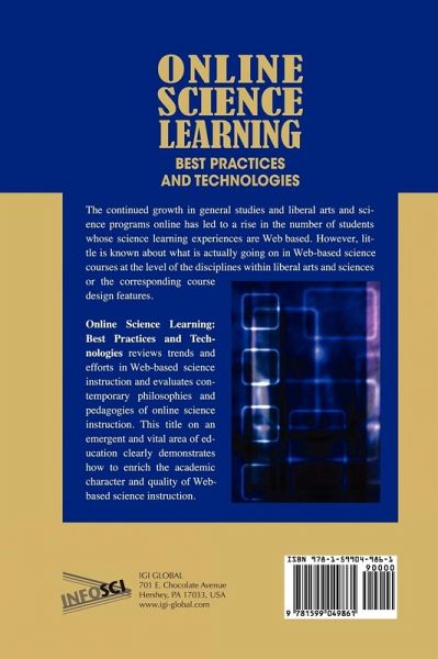 The continued growth in general studies and liberal arts and science programs online has led to a rise in the number of students whose science learning experiences are web-based. However, little is known about what is actually going on in web-based science courses at the level of the disciplines within liberal arts and sciences or the corresponding course design features. Online Science Learning: Best Practices and Technologies reviews trends and efforts in web-based science instruction and evaluates contemporary philosophies and pedagogies of online science instruction. This title on an emergent and vital area of education clearly demonstrates how to enrich the academic character and quality of web-based science instruction.