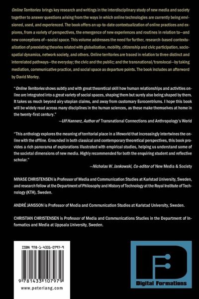 Online Territories brings key research and writings in the interdisciplinary study of new media and society together to answer questions arising from the ways in which online technologies are currently being envisioned, used, and experienced. The book offers an up-to-date contextualization of online practices and explores, from a variety of perspectives, the emergence of new experiences and routines in relation to - and new conceptions of - social space. This volume addresses the need for further, research-based contextualization of preexisting theories related with globalization, mobility, citizenship and civic participation, socio-spatial dynamics, network society, and others. Online territories are traced in relation to three distinct and interrelated pathways - the everyday; the civic and the public; and the transnational/translocal - by taking mediation, communicative practice, and social space as departure points. The book includes an afterword by David Morley.