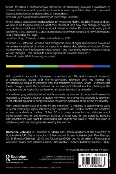 Catherine Johnson is Professor of Media and Communications at the University of Huddersfield, UK. She is the author of Promotional Screen Industries (with Paul Grainge, 2015), Branding Television (2012) and Telefantasy (2005), and the co-editor of Transnational Television History (with Andreas Fickers, 2012) and ITV Cultures (with Rob Turnock, 2005).