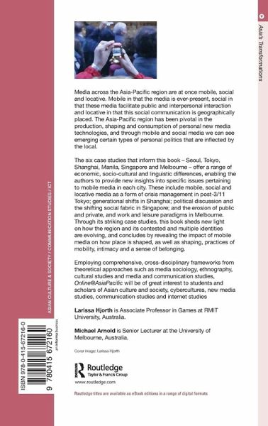 Media across the Asia-Pacific region are at once social, locative and mobile. Social in that these media facilitate public and interpersonal interaction, locative in that this social communication is geographically placed, and mobile in so much as the media is ever-present. The Asia-Pacific region has been pivotal in the production, shaping and consumption of personal new media technologies and through social and mobile media we can see emerging certain types of personal politics that are inflected by the local. The six case studies that inform this book-Seoul, Tokyo, Shanghai, Manila, Singapore and Melbourne-offer a range of economic, socio-cultural, and linguistic differences, enabling the authors to provide new insights into specific issues pertaining to mobile media in each city. These include social, mobile and locative media as a form of crisis management in post 3/11 Tokyo; generational shifts in Shanghai; political discussion and the shifting social fabric in Singapore; and the erosion of public and private, and work and leisure paradigms in Melbourne. Through its striking case studies, this book sheds new light on how the region and its contested and multiple identities are evolving, and concludes by revealing the impact of mobile media on how place is shaped, as well as shaping, practices of mobility, intimacy and a sense of belonging. Employing comprehensive, cross-disciplinary frameworks from theoretical approaches such as media sociology, ethnography, cultural studies and media and communication studies, Online@AsiaPacific will be of huge interest to students and scholars of Asian culture and society, cybercultures, new media studies, communication studies and internet studies.