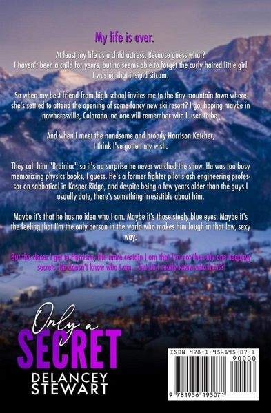 From USA Today bestselling author Delancey Stewart comes an age-gap, secret identity small town romcom with plenty of steam! My life is over. At least my life as a child actress. Because guess what? I haven't been a child for years, but no one seems able to forget the curly haired little girl I was on that insipid sitcom. So when my best friend from high school invites me to the tiny mountain town where she's settled to attend the opening of some fancy new ski resort? I go, hoping maybe in nowheresville, Colorado, no one will remember who I used to be. And when I meet the handsome and broody Harrison Ketcher, I think I've gotten my wish. They call him "Brainiac" so it's no surprise he never watched the show. He was too busy memorizing physics books, I guess. He's a former fighter pilot slash engineering professor on sabbatical in Kasper Ridge, and despite being a few years older than the guys I usually date, there's something irresistible about him. Maybe it's that he has no idea who I am. Maybe it's those steely blue eyes. Maybe it's the feeling that I'm the only person in the world who makes him laugh in that low, sexy way. But the closer I get to Harrison, the more certain I am that I'm not the only one keeping secrets. He doesn't know who I am... but do I really know who he is?