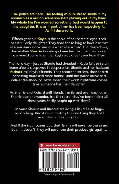 The police are here. The feeling of pure dread swirls in my stomach as a million scenarios start playing out in my head. My whole life I've expected something bad to happen to my daughter. It is as if part of me has been expecting it. As if I deserve it. Fifteen-year-old Kayla is the apple of her parents' eyes, their beautiful only daughter. They tried for so long to have her that she was even more precious when she arrived. But deep down, her mother Sherrie has always been terrified that their worst fear would come true: that Kayla would be taken from them. Then one day - just as Sherrie had dreaded - Kayla fails to return home after a sleepover. In desperation, Sherrie and her husband Richard call Kayla's friends. They scour the streets, their search becoming more and more frantic. Until the police arrive and deliver the shocking news, when their worst nightmare comes true: someone has their daughter. As Sherrie and Richard grill friends, family, and even each other, Sherrie starts to wonder, has the secret they've been hiding all these years finally caught up with them? Because Sherrie and Richard are living a lie. A lie so huge, so shocking, that it could destroy the one thing they hold most dear - their daughter. And if the truth comes out, their family will never be the same. But if it doesn't, they will never see their precious girl again... A totally unputdownable psychological thriller that will have you gasping out loud until the very last page. If you love Lisa Jewell, K.L. Slater and T.M. Logan, you'll be obsessed with Only Child. Readers love Casey Kelleher: 'Oh My Goodness, I feel like I've been thrown around in my tumble dryer for the last 3 hours!!... Full of twists and turns... I was glued to my sofa all afternoon reading it!... Mind blowing.' My Chestnut Reading Tree ¿¿¿¿¿ 'Wow!... I was blown away!... Gripping... Just when you think you have figured everything out the author surprises you with another twist and keeps you guessing till the very end... I was hooked!' Goodreads reviewer ¿¿¿¿¿ 'Wow, wow, wow!!!!! My mind is blown. This has to be one of the best books I've read... Once I got started... I could not stop. I read well into the night until I finally couldn't see the words anymore. It was just that good.' Blue Moon Blogger ¿¿¿¿¿ 'OMG WHAT A READ... Gripping... Will stay with me long after I have turned the last page.' NetGalley reviewer ¿¿¿¿¿ 'Wow, this was one heck of a rollercoaster ride... A cracker of a psychological thriller...This is one hell of a page turner and I was gripped from the very beginning!' Goodreads reviewer ¿¿¿¿¿ 'BOOM! A cracking addictive physiological thriller... I just couldn't put it down. Amazing.' Goodreads reviewer ¿¿¿¿¿ 'The most exciting book ever!... Honestly amazing! I was hanging onto every word!' Rubie Reads ¿¿¿¿¿