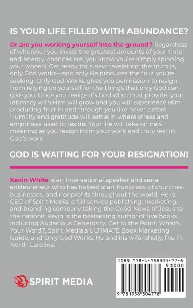 Is Your Life Filled With Abundance? Or are you working yourself into the ground? Regardless of wherever you invest the greatest amounts of your time and energy, chances are, you know you're simply spinning your wheels. Get ready for a new revelation: the truth is, only God works-and only He produces the fruit you're seeking. Only God Works gives you permission to resign from relying on yourself for the things that only God can give you. Once you realize it's God who must provide, your intimacy with Him will grow and you will experience Him producing fruit in and through you like never before. Humility and gratitude will settle in where stress and emptiness used to reside. Your life will take on new meaning as you resign from your work and truly rest in God's work. God is waiting for your resignation!