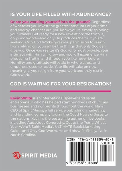 Is Your Life Filled With Abundance? Or are you working yourself into the ground? Regardless of wherever you invest the greatest amounts of your time and energy, chances are, you know you're simply spinning your wheels. Get ready for a new revelation: the truth is, only God works-and only He produces the fruit you're seeking. Only God Works gives you permission to resign from relying on yourself for the things that only God can give you. Once you realize it's God who must provide, your intimacy with Him will grow and you will experience Him producing fruit in and through you like never before. Humility and gratitude will settle in where stress and emptiness used to reside. Your life will take on new meaning as you resign from your work and truly rest in God's work. God is waiting for your resignation!