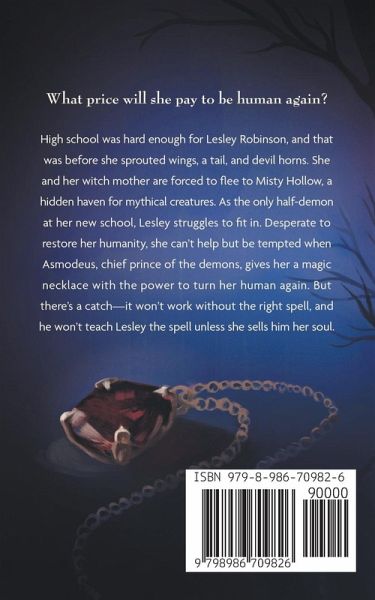 High school was hard enough for Lesley Robinson, and that was before she sprouted wings, a tail, and devil horns. She and her witch mother are forced to flee to Misty Hollow, a hidden haven for mythical creatures. As the only half-demon at her new school, Lesley struggles to fit in. Desperate to restore her humanity, she can't help but be tempted when Asmodeus, chief prince of the demons, gives her a magic necklace with the power to turn her human again. But there's a catch—it won't work without the right spell, and he won't teach Lesley the spell unless she sells him her soul.
