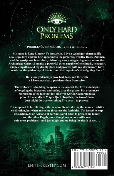 "This is space opera at its finest."-Ilona Andrews, #1 New York Times bestselling author on Only Bad Options New York Times best-selling author Jennifer Estep continues her Galactic Bonds series with a new, action-packed adventure that blends science-fiction technology and magical fantasy elements with a touch of historical romance. This rollicking space opera focuses on a fan-favorite secondary character who's part hero, part villain, and all arrogance. Perfect for fans of Star Wars, Dune, Bridgerton, and Pride and Prejudice. PROBLEMS, PROBLEMS EVERYWHERE . . . My name is Zane Zimmer. To most folks, I live a seemingly charmed life as a Regal lord and the heir apparent to the powerful, wealthy House Zimmer, and the gossipcasts breathlessly follow my every swaggering move across the Archipelago Galaxy. I'm also a powerful psion capable of telekinesis, telepathy, and telempathy, and my deadly skills and prowess with my stormsword have made me the golden boy of the Arrows, the Imperium's elite fighting force. But even golden boys have bad days, and the truth is I have more hard problems than I can solve. The Techwave is building weapons to use against the Arrows in hopes of toppling the Imperium and taking over the galaxy. But even more worrisome is the fact that my old rival Kyrion Caldaren has a powerful new ally in Vesper Quill. Together, the two of them just might destroy everything I've sworn to protect. I'm supposed to be relaxing with the other Regals during the Summer Solstice celebration, but when an enemy threatens the festivities, I'm forced to leap into action. As an Arrow, I'll do whatever it takes to protect my family and the other Regals, even though my actions will cause only more problems-and just might end up being the death of me . . . Note: Only Hard Problems is a 47,000-word book from the point of view of Zane Zimmer. It takes place after Only Good Enemies, book 2 in the Galactic Bonds science-fiction fantasy series.