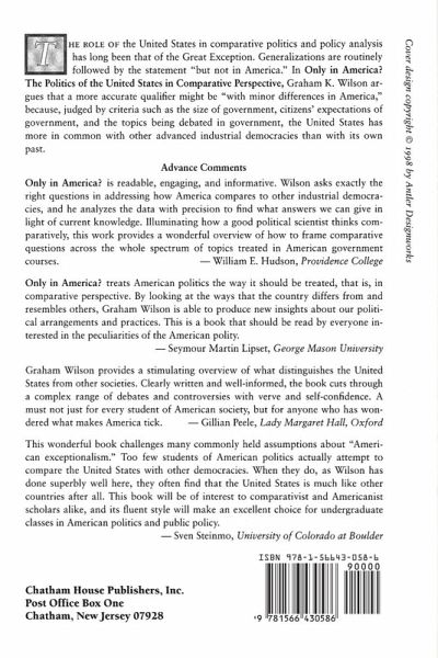 To answer these questions, Graham K. Wilson selects several major areas of comparison: the size and scope of government, the nature of beliefs about politics and government, subjects of political debate, patterns of public policy, and the character of political institutions. Refuting the traditional theory of path dependency, Wilson's conclusions challenge the reader to question popular beliefs about American politics and consider new interpretations of international political experience.