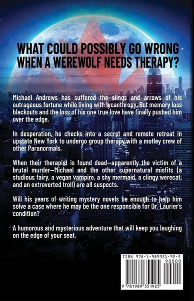 WHAT COULD POSSIBLY GO WRONG WHEN A WEREWOLF NEEDS THERAPY? Michael Andrews has suffered the slings and arrows of his outrageous fortune while living with lycanthropy. But the blackouts from when he transforms into a wolf and the latest loss of his one true love have finally pushed him over the edge. In desperation, he checks into a secret and remote retreat in upstate New York to undergo group therapy with a motley crew of other Paranormals. When their therapist is found dead-apparently the victim of a brutal murder-Michael and the other supernatural misfits (a studious fairy, a vegan…mehr