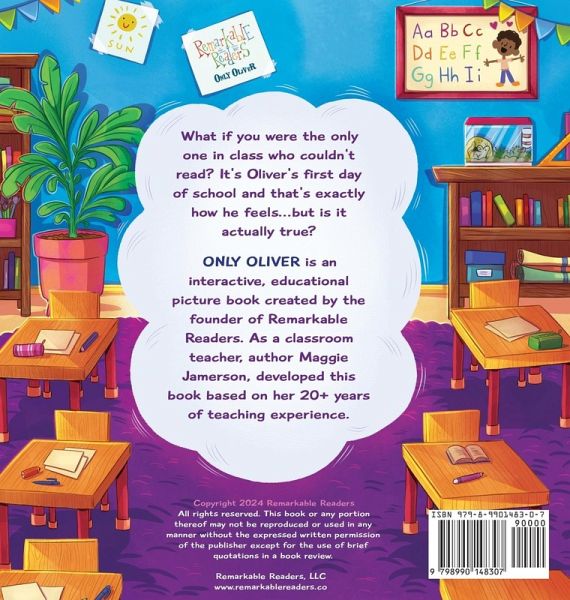 What if you were the only one in class who couldn't read? It's Oliver's first day of school and that's exactly how he feels...but is it actually true? ONLY OLIVER is an interactive, educational picture book created by the founder of Remarkable Readers.