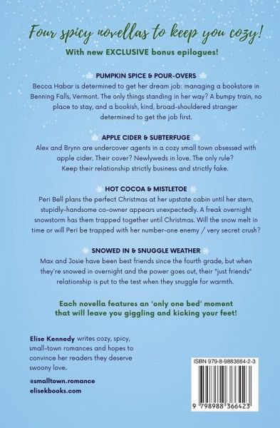 This omnibus collection of 4 spicy novellas is now available for the first time in paperback! Includes BRAND NEW exclusive bonus epilogues for all 4 novellas only available in paperback! This collection includes:Pumpkin Spice & Pour-Overs Apple Cider & Subterfuge Hot Cocoa & Mistletoe Snowed In & Snuggle Weather