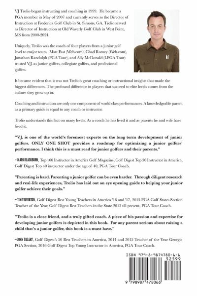 Elite, competitive, gritty, healthy competitors are made; they are not managed into existence. Tomorrow's generation of athletes will be made primarily by the good judgment and keen discrimination of parents, mentors, and coaches. None of these will be more important than the wisdom of the home. Time and Patience are the two primary ingredients of wisdom. Inside these pages you will find a coach of young athletes in golf for the past twenty years. He will give you researched facts the he applies to young athletes and their teams. The secret is to recognize the difference between intention and emphasis and how to apply it appropriately and consistently. You will also find the untold story of one young athlete that grew into a FIVE-time champion on the PGA Tour and a Ryder Cup hero. You will be able to see behind the curtain of a world-class career and the important role played by those that surround and nurture the athlete. These two, a coach and an athlete, do not wish to persuade you; but instead they wish to push you to think. This is more than a great story or entertaining read. It is an approach, a mindset, and a guide that you will use to define, create, and apply to your young athlete. All heroes need a guide and sometimes that guide has ONLY ONE SHOT. This book is dedicated to you, the guide.-- "Only One Shot"