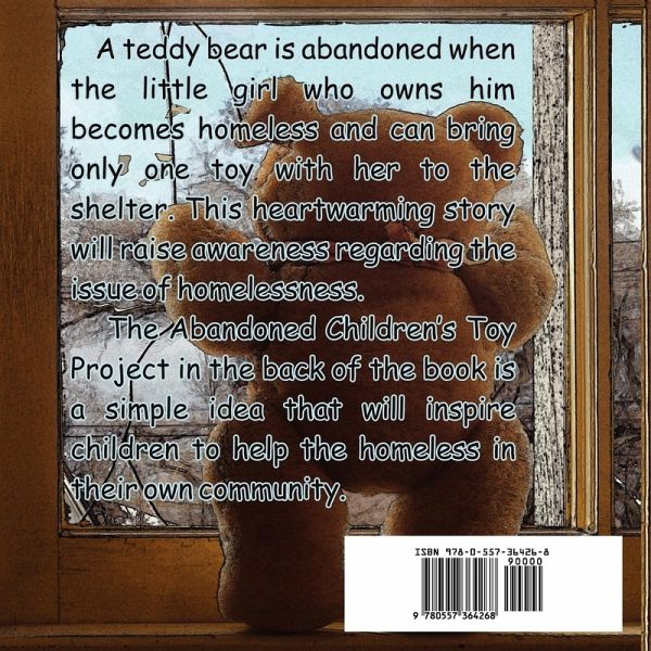 A teddy bear is abandoned when the little girl who owns him becomes homeless and can bring only one toy with her to the shelter. This heartwarming story will raise children's awareness about homelessness. The Abandoned Children's Toy Project is a simple idea that will inspire children to help the homeless in their community.