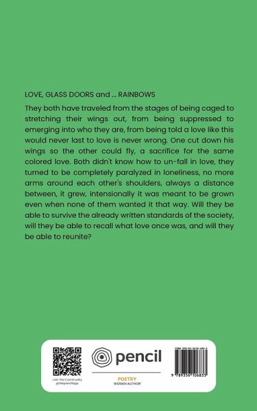 LOVE, GLASS DOORS and ... RAINBOWS They both have traveled from the stages of being caged to stretching their wings out, from being suppressed to emerging into who they are, from being told a love like this would never last to love is never wrong. One cut down his wings so the other could fly, a sacrifice for the same colored love. Both didn't know how to un-fall in love, they turned to be completely paralyzed in loneliness, no more arms around each other's shoulders, always a distance between, it grew, intensionally it was meant to be grown even when none of them wanted it that way. Will they be able to survive the already written standards of the society, will they be able to recall what love once was, and will they be able to reunite?