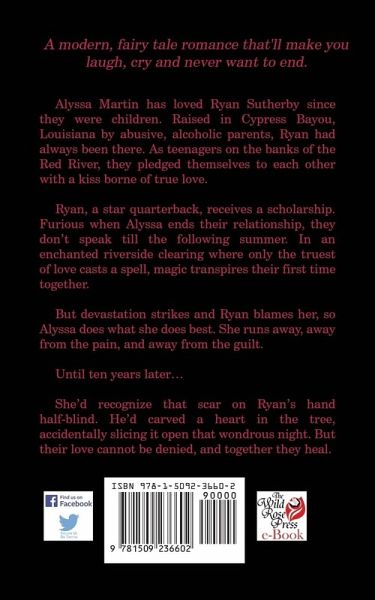 Alyssa Martin has loved Ryan Sutherby since they were children. Raised in Cypress Bayou, Louisiana by abusive, alcoholic parents, Ryan had always been there. As teenagers on the banks of the Red River, they pledged themselves to each other with a kiss borne of true love. Ryan, a star quarterback, receives a scholarship. Furious when Alyssa ends their relationship, they don't speak till the following summer. In an enchanted riverside clearing where only the truest of love casts a spell, magic transpires their first time together. But devastation strikes and Ryan blames her, so Alyssa does what she does best. She runs away, away from the pain, and away from the guilt. Until ten years later... She'd recognize that scar on Ryan's hand half-blind. He'd carved a heart in the tree, accidentally slicing it open that wondrous night. But their love cannot be denied, and together they heal.