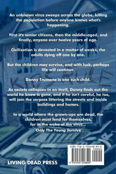 An unknown virus sweeps across the globe, killing the population before anyone knows what's happening. First it's senior citizens, then the middle-aged, and finally, anyone over twelve years of age. Civilization is devastated in a matter of weeks, the adults dying off one by one. But the children may survive, and with luck, perhaps life will continue. Danny Trumane is one such child. As society collapses in on itself, Danny finds out the world he knew is gone, and if he isn't careful, he too, will join the corpses littering the streets and inside buildings and homes. In a world where the grown-ups are dead, the children must fend for themselves, for in the wake of the virus. . . Only The Young Survive.