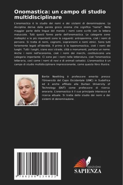 L'onomastica è lo studio dei nomi e dei sistemi di denominazione. La disciplina deriva dalla parola greca onoma che significa "nome". Nella maggior parte delle lingue del mondo i nomi sono scritti con la lettera maiuscola. Tutti questi fanno parte dell'onomastica. Le categorie sono molteplici e le più importanti sono le seguenti: antroponimia, cioè i nomi di persone. Si tratta di nomi, cognomi, soprannomi e nomi etnici. Sono tutti fortemente legati all'identità. Il primo è la toponomastica, cioè i nomi dei luoghi. Tutti i luoghi, siano essi strade, città o monumenti, portano un nome. Anche i nomi nell'economia, cioè i nomi dei marchi, costituiscono una categoria importante. Ci sono poi i nomi nella letteratura, cioè l'onomastica letteraria, così come i nomi di navi e di animali selvatici. L'onomastica è un campo di studio multidisciplinare impressionante, come questo libro illustra.