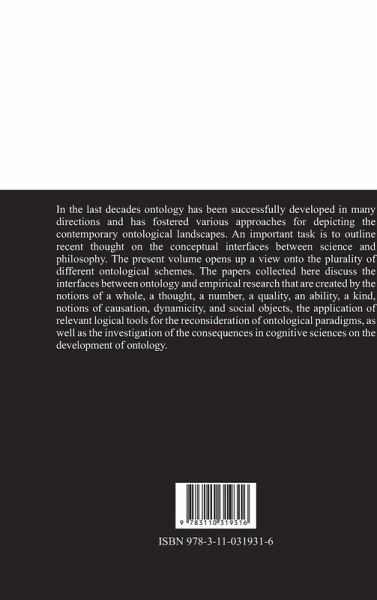 In the last decades ontology has been successfully developed in many directions and has fostered various approaches for depicting the contemporary ontological landscapes. An important task is to outline recent thought on the conceptual interfaces between science and philosophy. The present volume opens up a view onto the plurality of different ontological schemes. The papers collected here discuss the interfaces between ontology and empirical research that are created by the notions of a whole, a thought, a number, a quality, an ability, a kind, notions of causation, dynamicity, and social objects, the application of relevant logical tools for the reconsideration of ontological paradigms, as well as the investigation of the consequences in cognitive sciences on the development of ontology.