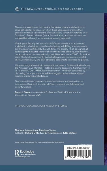 The central assertion of this book is that states pursue social actions to serve self-identity needs, even when these actions compromise their physical existence. Three forms of social action, sometimes referred to as 'motives' of state behaviour (moral, humanitarian, and honour-driven) are analyzed here through an ontological security approach. Brent J. Steele develops an account of social action which interprets these behaviours as fulfilling a nation-state's drive to secure self-identity through time. The anxiety which consumes all social agents motivates them to secure their sense of being, and thus he posits that transformational possibilities exist in the 'Self' of a nation-state. The volume consequently both challenges and complements realist, liberal, constructivist and post-structural accounts to international politics. Using ontological security to interpret three cases - British neutrality during the American Civil War (1861-1865), Belgium's decision to fight Germany in 1914, and NATO's (1999) Kosovo intervention - the book concludes by discussing the importance for self-interrogation in both the study and practice of international relations. Ontological Security in International Relations will be of particular interest to students and researchers of international politics, international ethics, international relations and security studies.