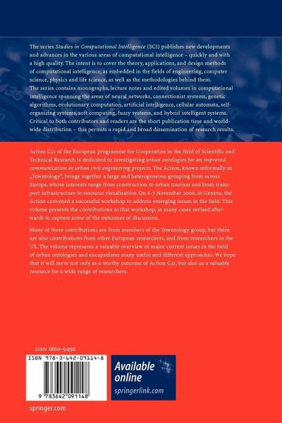 Many of these contributions are from members of the Towntology group, but there are also contributions from other European researchers, and from researchers in the US. The volume represents a valuable overview of major current issues in the field of urban ontologies and encapsulates many useful and different approaches. We hope that it will serve not only as a worthy outcome of Action C21, but also as a valuable resource for a wide range of researchers.
