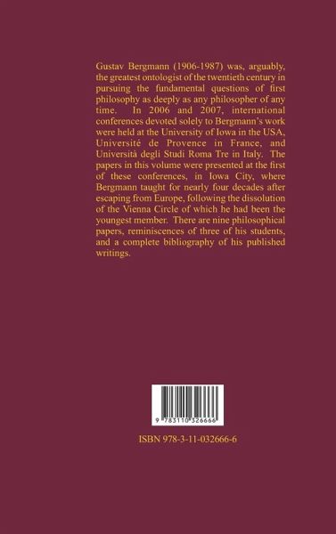 Gustav Bergmann (1906-1987) was, arguably, the greatest ontologist of the twentieth century in pursuing the fundamental questions of first philosophy as deeply as any philosopher of any time. In 2006 and 2007, international conferences devoted solely to Bergmann's work were held at the University of Iowa in the USA, Université de Provence in France, and Università degli Studi Roma Tre in Italy. The papers in this volume were presented at the first of these conferences, in Iowa City, where Bergmann taught for nearly four decades after escaping from Europe, following the dissolution of the Vienna Circle of which he had been the youngest member. There are nine philosophical papers, reminiscences of three of his students, and a complete bibliography of his published writings.
