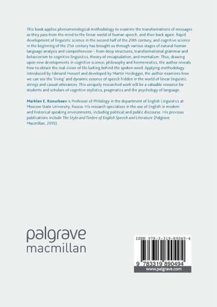 This book applies phenomenological methodology to examine the transformations of messages as they pass from the mind to the linear world of human speech, and then back again. Rapid development of linguistic science in the second half of the 20th century, and cognitive science in the beginning of the 21st century has brought us through various stages of natural human language analysis and comprehension - from deep structures, transformational grammar and behaviorism to cognitive linguistics, theory of encapsulation, and mentalism. Thus, drawing upon new developments in cognitive science, philosophy and hermeneutics, the author reveals how to obtain the real vision of life lurking behind the spoken word.