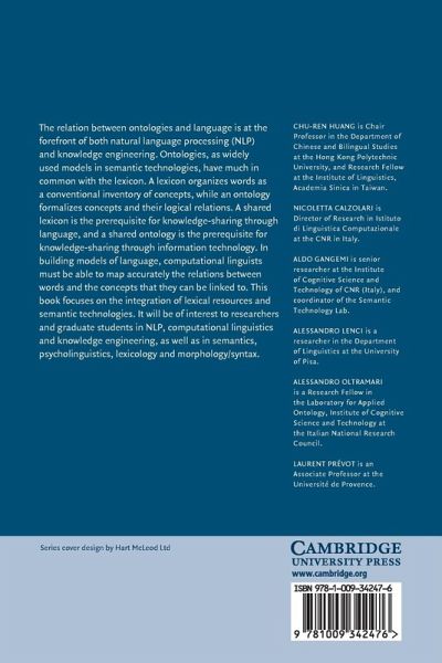 The relation between ontologies and language is currently at the forefront of natural language processing (NLP). This book focuses on the technology involved in enabling integration between lexical resources and semantic technologies. It will be of interest to researchers and graduate students in NLP, computational linguistics, and knowledge engineering.