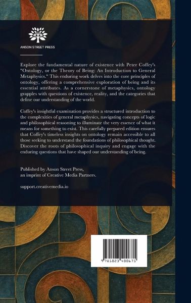 Explore the fundamental nature of existence with Peter Coffey's "Ontology, or the Theory of Being: An Introduction to General Metaphysics." This enduring work delves into the core principles of ontology, offering a comprehensive exploration of being and its essential attributes. As a cornerstone of metaphysics, ontology grapples with questions of existence, reality, and the categories that define our understanding of the world. Coffey's insightful examination provides a structured introduction to the complexities of general metaphysics, navigating concepts of logic and philosophical reasoning to illuminate the very essence of what it means for something to exist. This carefully prepared edition ensures that Coffey's timeless insights on ontology remain accessible to all those seeking to understand the foundations of philosophical thought. Discover the roots of philosophical inquiry and engage with the enduring questions that have shaped our understanding of being. This work has been selected by scholars as being culturally important, and is part of the knowledge base of civilization as we know it. This work is in the public domain in the United States of America, and possibly other nations. Within the United States, you may freely copy and distribute this work, as no entity (individual or corporate) has a copyright on the body of the work. Scholars believe, and we concur, that this work is important enough to be preserved, reproduced, and made generally available to the public. We appreciate your support of the preservation process, and thank you for being an important part of keeping this knowledge alive and relevant.