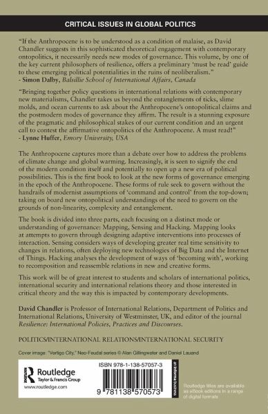 This is the first book to look at new forms of governance emerging in the epoch of the Anthropocene. Forms of rule, seeking to govern without the handrails of modernist assumptions of â command and controlâ from the top-down; taking on ontopolitical understandings of the need to govern on the grounds of non-linearity, complexity and entanglement.