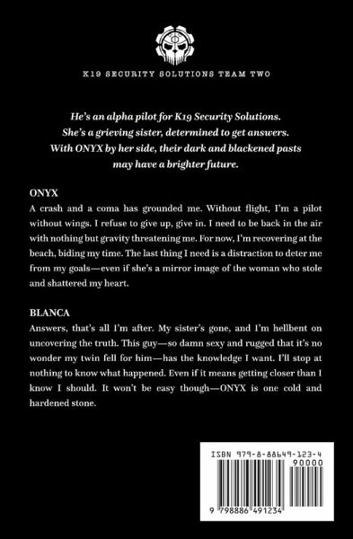 He's an alpha pilot for K19 Security Solutions. She's a grieving sister, determined to get answers. With ONYX by her side, their dark and blackened pasts may have a brighter future. ONYX A crash and a coma has grounded me. Without flight, I'm a pilot without wings. I refuse to give up, give in. I need to be back in the air with nothing but gravity threatening me. For now, I'm recovering at the beach, biding my time. The last thing I need is a distraction to deter me from my goals-even if she's a mirror image of the woman who stole and shattered my heart. BLANCA Answers, that's all I'm after. My sister's gone, and I'm hellbent on uncovering the truth. This guy-so damn sexy and rugged that it's no wonder my twin fell for him-has the knowledge I want. I'll stop at nothing to know what happened. Even if it means getting closer than I know I should. It won't be easy though-ONYX is one cold and hardened stone. While each book in the K19 Security Solutions series is a standalone with its own HEA, they may be more enjoyable read in order.