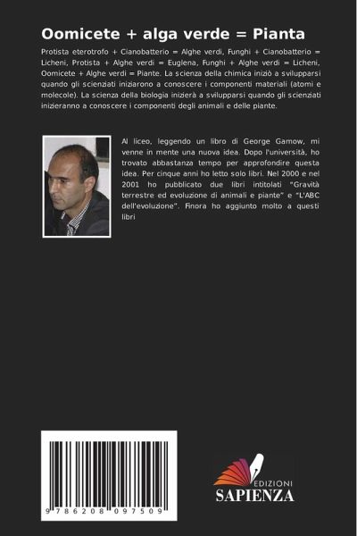 Protista eterotrofo + Cianobatterio = Alghe verdi, Funghi + Cianobatterio = Licheni, Protista + Alghe verdi = Euglena, Funghi + Alghe verdi = Licheni, Oomicete + Alghe verdi = Piante. La scienza della chimica iniziò a svilupparsi quando gli scienziati iniziarono a conoscere i componenti materiali (atomi e molecole). La scienza della biologia inizierà a svilupparsi quando gli scienziati inizieranno a conoscere i componenti degli animali e delle piante.