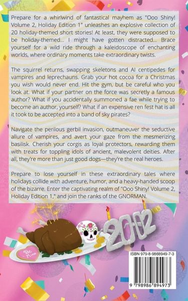 Funny and fantastical short stories from an ADHD mind. Prepare for a whirlwind of fantastical mayhem as "Ooo Shiny! Volume 2, Holiday Edition 1" unleashes an explosive collection of 20 holiday-themed short stories! At least, they were supposed to be holiday-themed... I might have gotten distracted... Brace yourself for a wild ride through a kaleidoscope of enchanting worlds, where ordinary moments take extraordinary twists. The squirrel returns, swapping skeletons and AI centipedes for vampires and leprechauns. Grab your hot cocoa for a Christmas you wish would never end. Hit the gym, but be careful who you look at. What if your partner on the force was secretly a famous author? What if you accidentally summoned a fae while trying to become an author, yourself? What if an expensive ren fest hat is all it took to be accepted into a band of sky pirates? Navigate the perilous gerbil invasion, outmaneuver the seductive allure of vampires, and avert your gaze from the mesmerizing basilisk. Cherish your corgis as loyal protectors, rewarding them with treats for toppling idols of ancient, malevolent deities. After all, they're more than just good dogs-they're the real heroes. Prepare to lose yourself in these extraordinary tales where holidays collide with adventure, humor, and a heavy-handed scoop of the bizarre. Enter the captivating realm of "Ooo Shiny! Volume 2, Holiday Edition 1," and join the ranks of the GNORMAN.