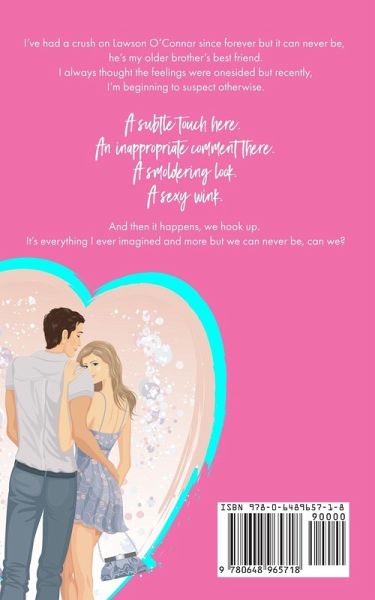 I've had a crush on Lawson O'Connor since forever but it can never be, he's my older brother's best friend. I always thought the feelings were one-sided but recently, I'm beginning to suspect otherwise. A subtle touch here. An inappropriate comment there.A smoldering look.A sexy wink. And then it happens, we hook up. It's everything I ever imagined and more but we can never be, can we?