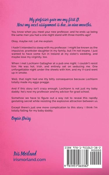 My professor gave me my first D. Now my next assignment is due...in nine months. You know when you meet your new professor, and he ends up being the same man you had a one-night stand with three months ago? Okay, maybe not. Let me explain. I hadn't intended to sleep with my professor. I might be known as the impulsive, prankster daughter in my family, but I'm not insane. I just wanted to have some fun in Ireland at my sister's wedding, and maybe lose my virginity, too. When I met Lochlann Gallagher at a pub one night, I couldn't resist him. He was hot, Irish, and entirely set on seducing me. One unforgettable night under the sheets with him, and my V-card went up in smoke. Well, that night had one itty bitty consequence because Lochlann totally made my eggo preggo. And if this story isn't crazy enough, Lochlann is not just my baby daddy: he's now my professor and my advisor for grad school. Somehow we have to figure out a way not to reveal this rapidly gestating secret while resisting the explosive attraction between us. Except there's just one more complication to this story: I think I'm totally falling for my baby daddy. Oopsie daisy.