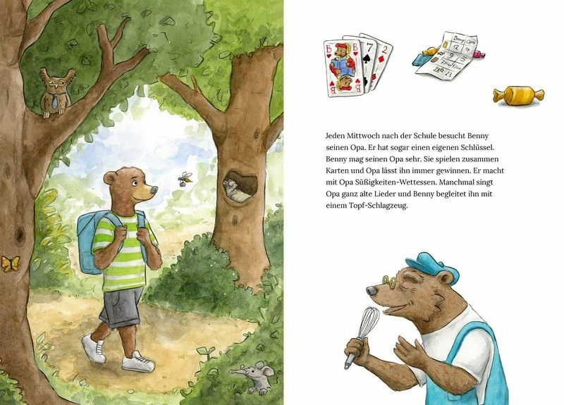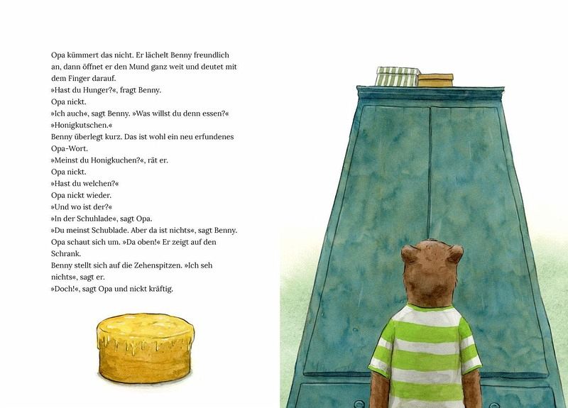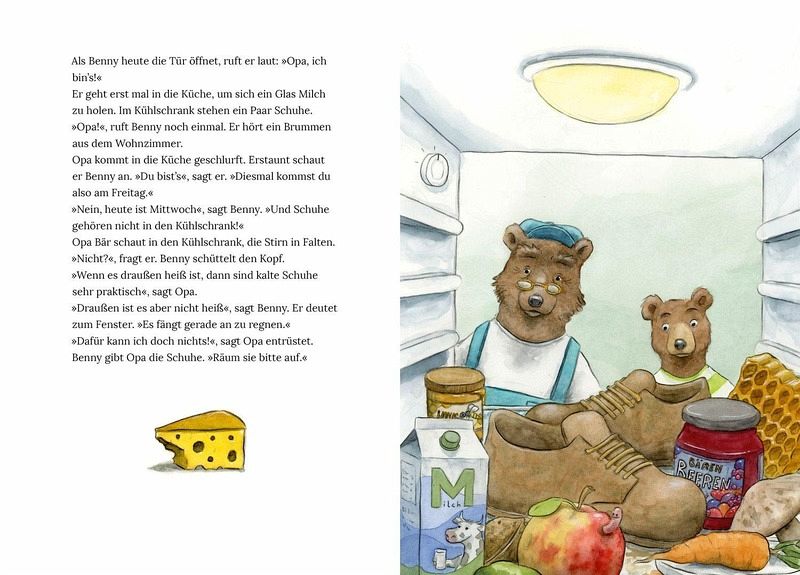 Bennys Opa macht seit einiger Zeit seltsame Dinge: Er verlegt allerlei Krams, erfindet neue Wörter und stellt sogar seine Schuhe in den Kühlschrank! Und wenn Benny ihn darauf anspricht, wird Opa sauer oder ganz traurig. Aber Benny versteht inzwischen, was los ist: Opa Bär hat eine Krankheit, bei der er vieles vergisst. Doch auch wenn es manchmal nicht leicht ist, schaffen die beiden es immer wieder, gemeinsam zu lachen.