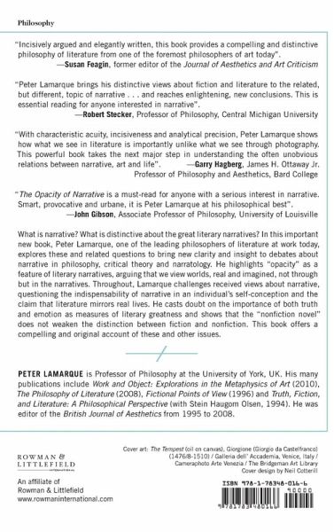 What is narrative? What is distinctive about the great literary narratives? In virtue of what is a narrative fictional or non-fictional? In this important new book Peter Lamarque, one of the leading philosophers of literature at work today, explores these and related questions to bring new clarity and insight to debates about narrative in philosophy, critical theory, and narratology. He highlights 'opacity' as a feature of literary narratives and examines the implications for our understanding of fictional worlds and fictional characters. Throughout he challenges received views about narrative, questioning the indispensability of narrative in an individual's self-conception and the importance of both truth and emotion as measures of literary greatness. He reflects on the 'non-fiction' novel arguing that it does not weaken the distinction between fiction and no-fiction. The book offers a compelling and original account of these and other issues, making a critical contribution to topical and wide-ranging debates.