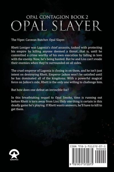 The Viper. Caravan Butcher. Opal Slayer. Rhett Loniger was Lagonia’s chief assassin, tasked with protecting his empire by killing anyone deemed a threat...that is, until he committed a crime worthy of his own execution by falling in love with the enemy. Now, he’s being hunted. But he and Liss can’t evade their enemies when they’re surrounded on all sides. The cruel emperor of Lagonia is closing in on them, and he isn’t just intent on destroying Rhett. Emperor Jaikon won't be satisfied until he has dominated all of the kingdoms. With a powerful magical force on Jaikon’s side, Rhett is the only one willing to challenge him. But how does one defeat an invincible foe? In this breathtaking sequel to Opal Smoke, time is running out before Rhett is torn away from Liss. Only one thing is certain in this deadly game he's playing. If Rhett wants answers, he’ll have to kill to get them.