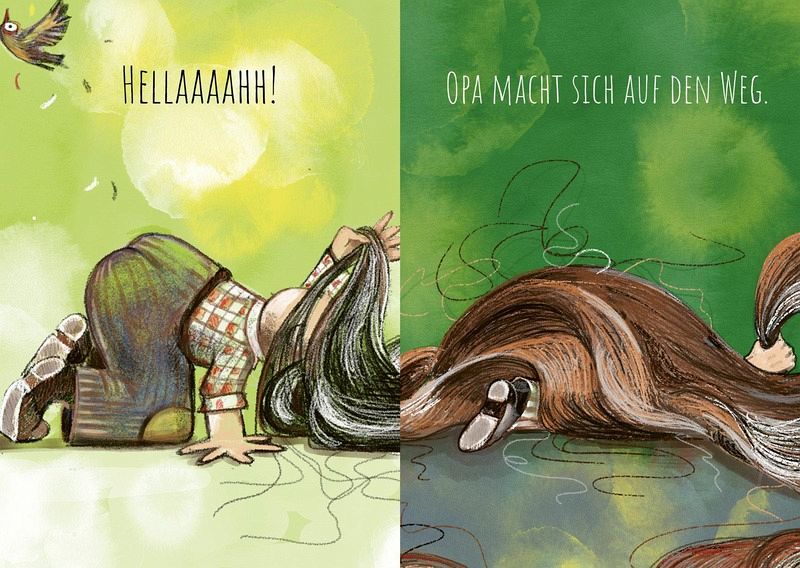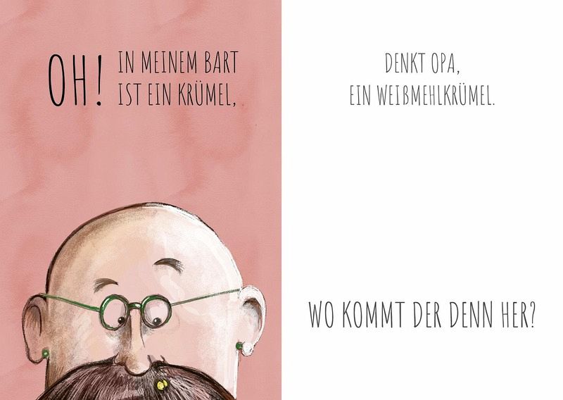 Opa ist vergesslich. Eines Morgens findet er einen Krümel in seinem Bart. Dann einen Tropfen, dann eine Tasse ... Anhand der Dinge versucht sich Opa an den Tag zu erinnern und folgt der Spur der hängen gebliebenen Sachen. Hoffnungslos verirrt er sich seinem Bart und den Erinnerungen. Einzig Hella könnte ihm helfen. Aber wo ist sie nur? Eine Geschichte über das Wiederfinden.Mit phantasievollen Illustrationen lädt die Autorin Dorit David große und kleine Leser ein, um ins Gespräch zu kommen. Mit einem Nachwort von Kabarettist Mattias Brodowy.