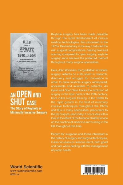 Keyhole surgery has been made possible through the rapid development of various medical technologies, first pioneered in the 1970s. Revolutionary in the way it reduced the risk, surgical complications, healing time and scarring compared to open surgery, keyhole surgery soon became the preferred method throughout many surgical specialities. Here, John Wickham, the 'godfather' of robotic surgery, reflects on a life spent in research, discovery and struggle for innovation in order to make keyhole surgery widespread, accessible and available to patients. An Open and Shut Case tracks the evolution of surgery in the later parts of the 20th century, from initial surgical training in the 1960s to the rapid growth in the field of minimally invasive techniques throughout the 1970s and 80s in many specialities, precursors to the techniques used today. It concludes with a look at the effect of the National Health Service on the practice of medicine and nursing in the UK throughout this time. Perfect for surgeons and those interested in the history of surgery and surgical techniques, it also focusses on lessons learnt, both good and bad, when dealing with the management of public health.