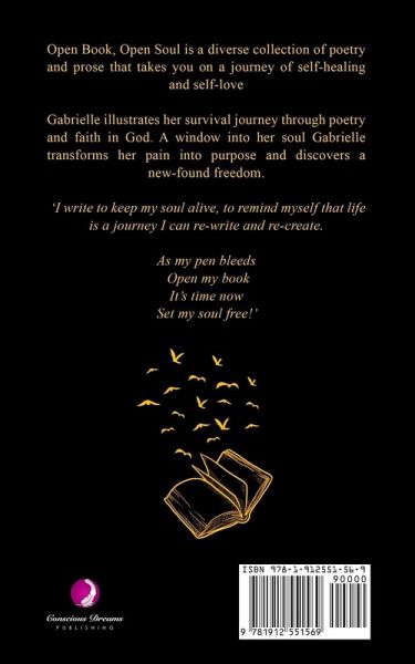 'I write to keep my soul alive, to remind myself that life is a journey I can re-write and re-create.' Open Book, Open Soul diverse collection of poetry and prose that takes you on a journey of self-healing and self-love. Gabrielle illustrates her survival journey through poetry and faith in God. A window into her soul Gabrielle transforms her pain into purpose and discovers a new-found freedom. Express yourself Love yourself Let it out Let it go! As my pen bleeds Open my book It's time now Set my soul free!