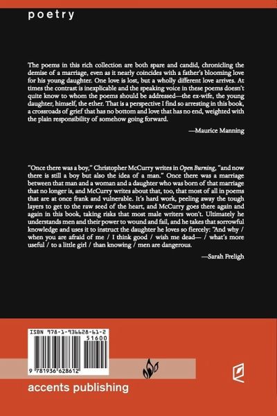"The poems in this rich collection are both spare and candid, chronicling the demise of a marriage, even as it nearly coincides with a father's blooming love for his young daughter. One love is lost, but a wholly different love arrives. At times the contrast is inexplicable and the speaking voice in these poems doesn't quite know to whom the poems should be addressed- the ex-wife, the young daughter, himself, the ether. That is a perspective I find so arresting in this book, a crossroads of grief that has no bottom and love that has no end, weighted with the plain responsibility of somehow going forward"--