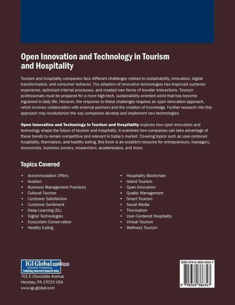 Tourism and hospitality companies face different challenges related to sustainability, innovation, digital transformation, and consumer behavior. The adoption of innovative technologies has improved customer experience, optimized internal processes, and created new forms of traveler interactions. Tourism professionals must be prepared for a more high-tech, sustainability-oriented world that has become ingrained in daily life. However, the response to these challenges requires an open innovation approach, which involves collaboration with external partners and the creation of knowledge. Further research into this approach may revolutionize the way companies develop and implement new technologies. Open Innovation and Technology in Tourism and Hospitality explores how open innovation and technology shape the future of tourism and hospitality. It examines how companies can take advantage of these trends to remain competitive and relevant in today's market. Covering topics such as user-centered hospitality, thermalism, and healthy eating, this book is an excellent resource for entrepreneurs, managers, economists, business owners, researchers, academicians, and more.