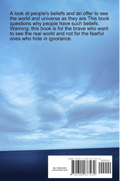A look at some people's beliefs in a god. Why people still believe in such a fantastic notion and an analytical approach to the historic and present reasoning for a myth considered reality. This book is not for the believer who is too immersed to even consider thinking about it. This book is for those who want to live in the real world and be aware of the actual universe around us. Warning: this book is about searching for the truth not hiding in fear.