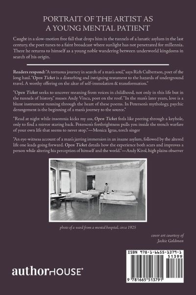 PORTRAIT OF THE ARTIST AS A YOUNG MENTAL PATIENT Caught in a slow-motion free fall that drops him in the tunnels of a lunatic asylum in the last century, the poet tunes to a faint broadcast where sunlight has not penetrated for millennia. There he returns to himself as a young noble wandering between underworld kingdoms in search of his origin.