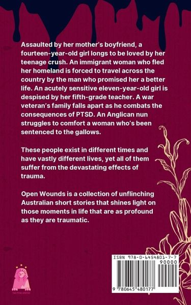 Open Wounds is a collection of unflinching Australian short stories that explore the deep and often painful moments in life that are as profound as they are traumatic. From a fourteen-year-old girl struggling with the scars of abuse, to a war veteran's family crumbling under the weight of PTSD, to a woman's journey across the country in search of a better life, these stories reveal the devastating impact of trauma on the human soul. Each character in Open Wounds grapples with a unique form of suffering, yet all are bound by the unrelenting need for love, healing, and redemption. The collection spans different times and lives, from the harsh realities of a young girl's emotional turmoil to the existential crisis of an Anglican nun comforting a condemned woman. With raw honesty and emotional depth, Open Wounds is for readers who appreciate powerful, thought-provoking fiction about survival, trauma, and the fragility of the human condition.