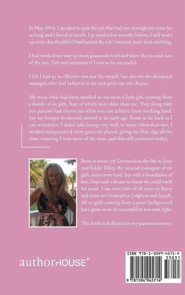 In May 2014, I decided to quit the job that had run through my veins for so long and I loved so much. Up until a few months before, I still woke up every day thankful I had landed the role I wanted more than anything. I had worked my way up from grassroots level and knew the ins and outs of the job. This was necessary if I was to be successful. I felt I had to be effective not just for myself, but also for the divisional manager, who had believed in me and given me my chance. My work ethic had been instilled in me from a little girl, coming from a family of six girls, four of which were older than me. They along with our parents had shown me what you can achieve from working hard, but my hunger to succeed started at an early age. From as far back as I can remember, I didn't take losing very well, so more often than not, I studied and practiced every game we played, giving me that edge all the time, ensuring I won most of the time, and this still continues today.